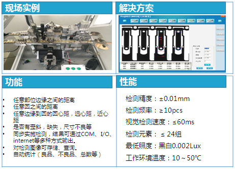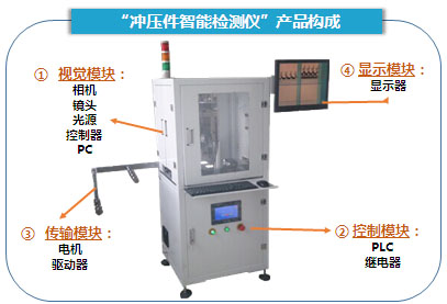 沖壓件檢測系統主要是沖壓件的幾何尺寸、端子缺少、漏沖、斷裂等異常狀況進行檢測,可提示報警或者控制機器停機。對不符合要求的沖壓件檢測后可輸出控制信號,剔除不合格品。